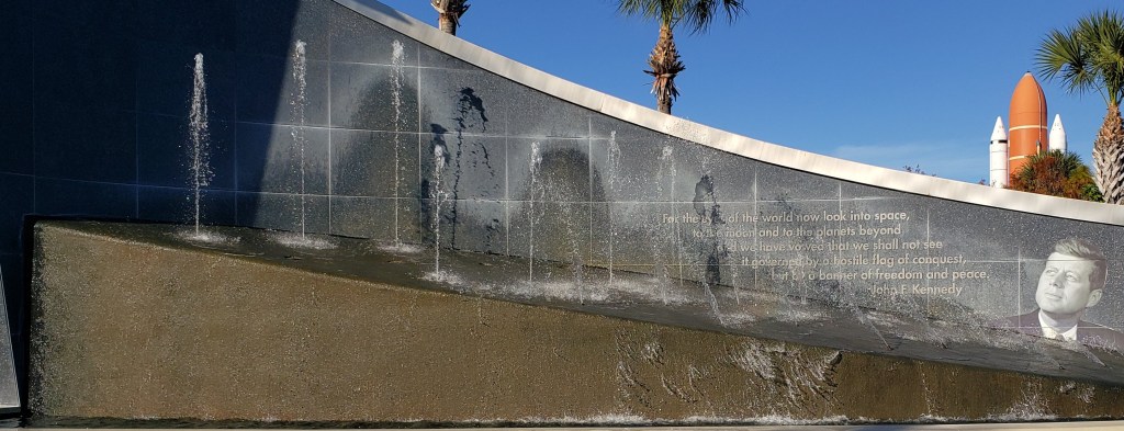 My final destination on this trip was something I was looking forward to since my first visit last year – Kennedy Space Center. The moment you walk onto the campus inspiration is everywhere. On arrival you’re greeted with a waterfall monument with words from President Kennedy – “For the eyes of the world look into space, to the moon and the planets beyond….” It’s fitting that such words are framed with the Space Shuttle external tank and solid rocket boosters in the distance.